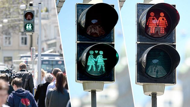 Die Ampelmännchen in Wien bekommen Gesellschaft: Künftig werden ein Paar aus Mann und Frau, zwei Frauen sowie zwei Männer den Passanten zeigen, wann sie stehen und wann sie gehen dürfen.